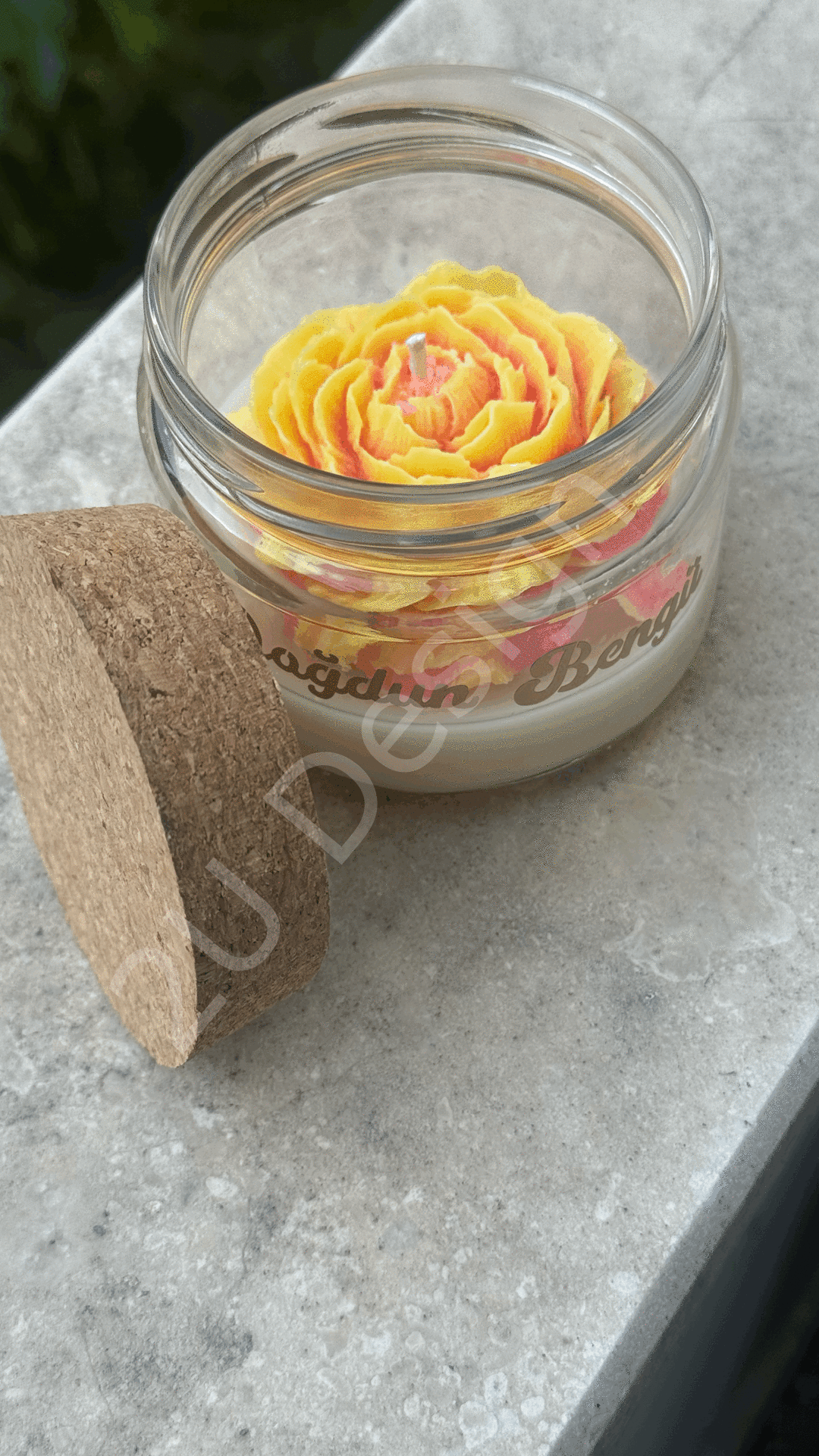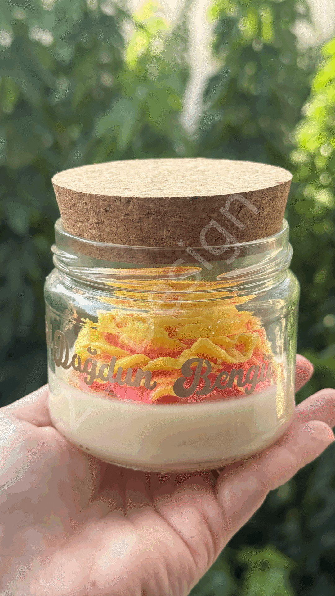 Mum taban rengi doğal soya wax, şakayık çiçek rengi sarı ve pembe